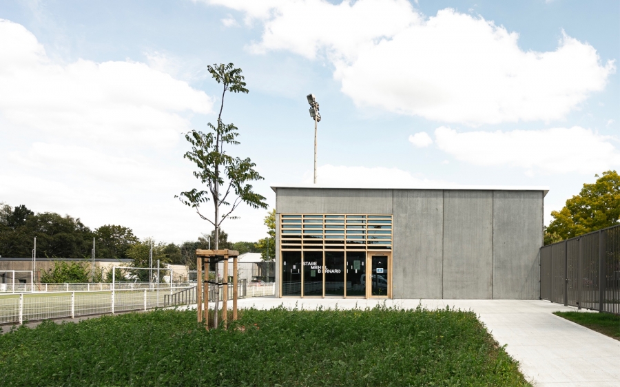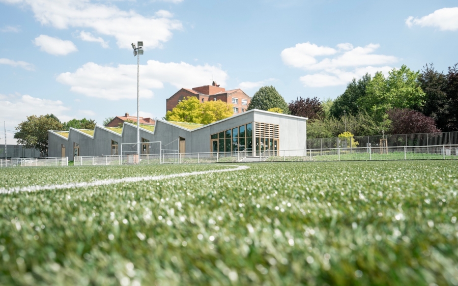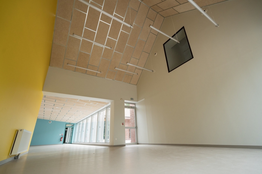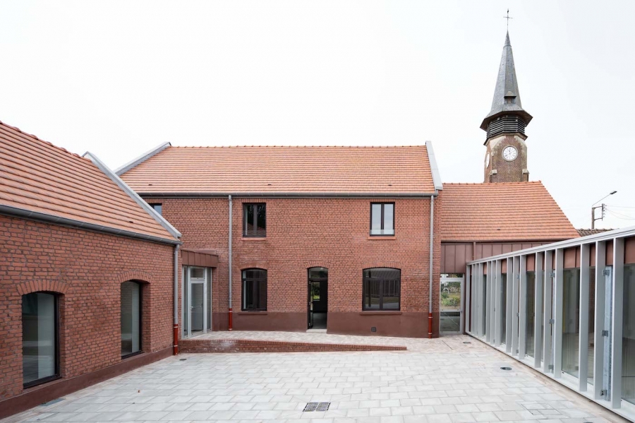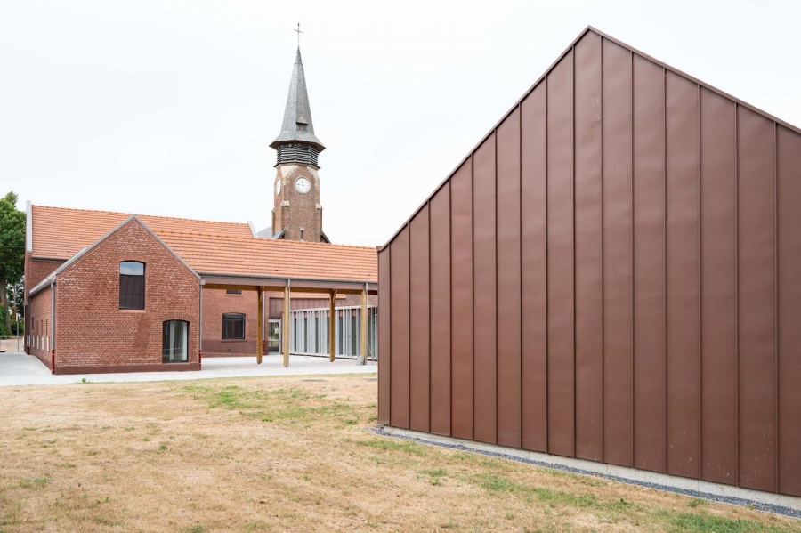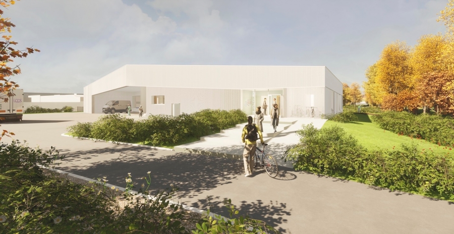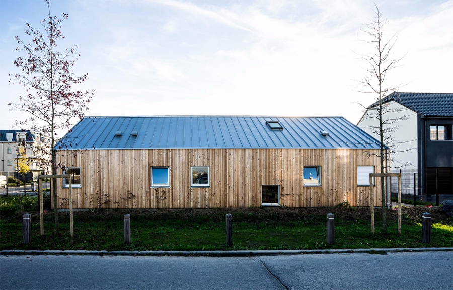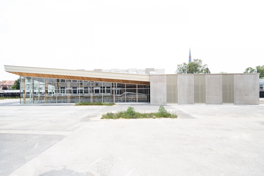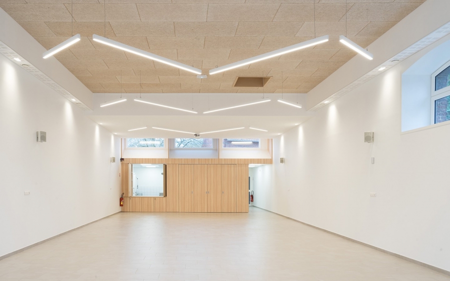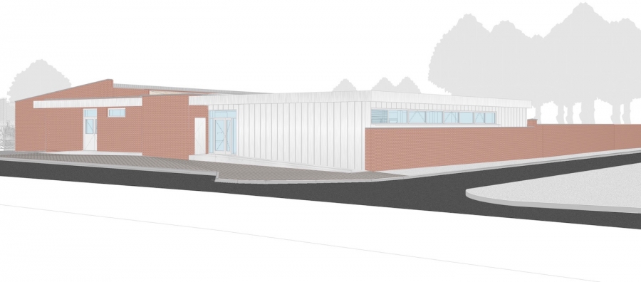 Le projet de rénovation de la salle de sports René Werquin et des vestiaires du CCA Jacques Houssin vise à améliorer les conditions d’accessibilité et de confort tout en réduisant les consommations énergétiques de ce bâtiment construit dans les années 1970. La réhabilitation thermique de la salle passe par l’installation d’une nouvelle chaudière pellets bois comme source d’énergie principale pour l’ensemble des bâtiments publics de la parcelle (salle de sport, mairie, club de foot, centre associatif et école). Profitant de l’extension accueillant la chaufferie du site, PLATO propose une nouvelle entrée "événement" visible depuis la place principale de la commune, donnant une nouvelle identité à la salle et transformant son pignon en façade principale. Parallèlement, la mise en accessibilité des vestiaires est couplée avec la requalification de l’entrée des sportifs et des espaces extérieurs y menant.