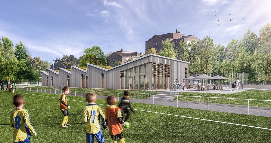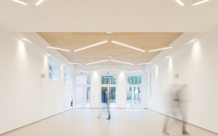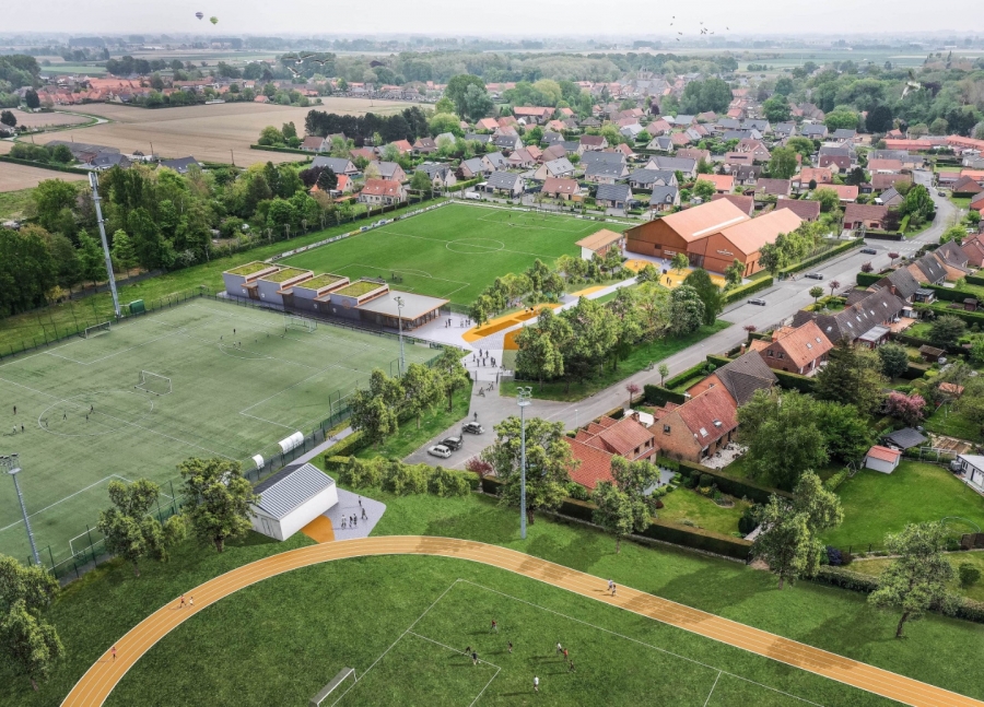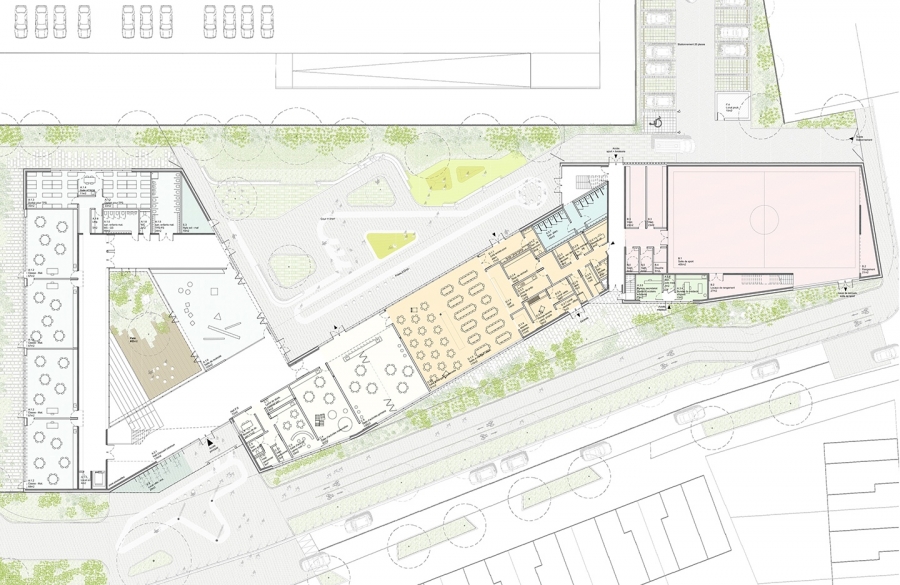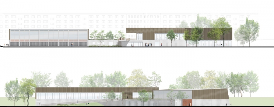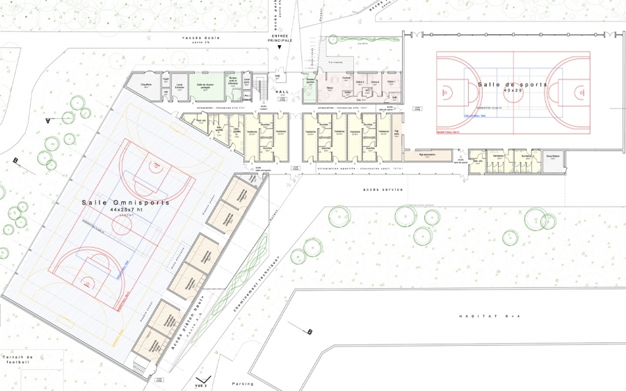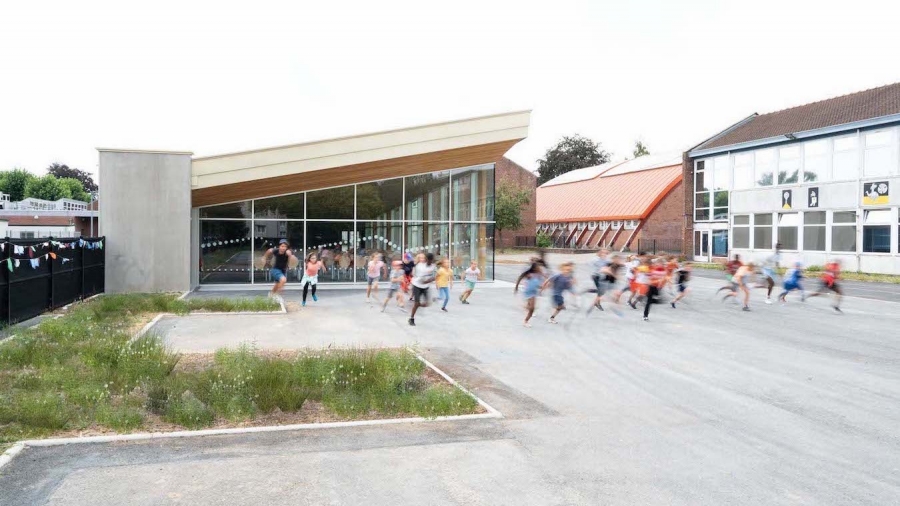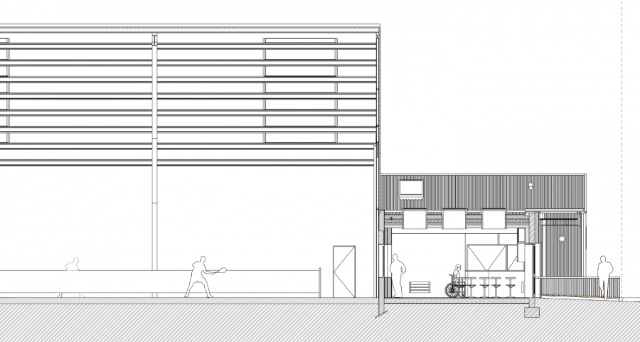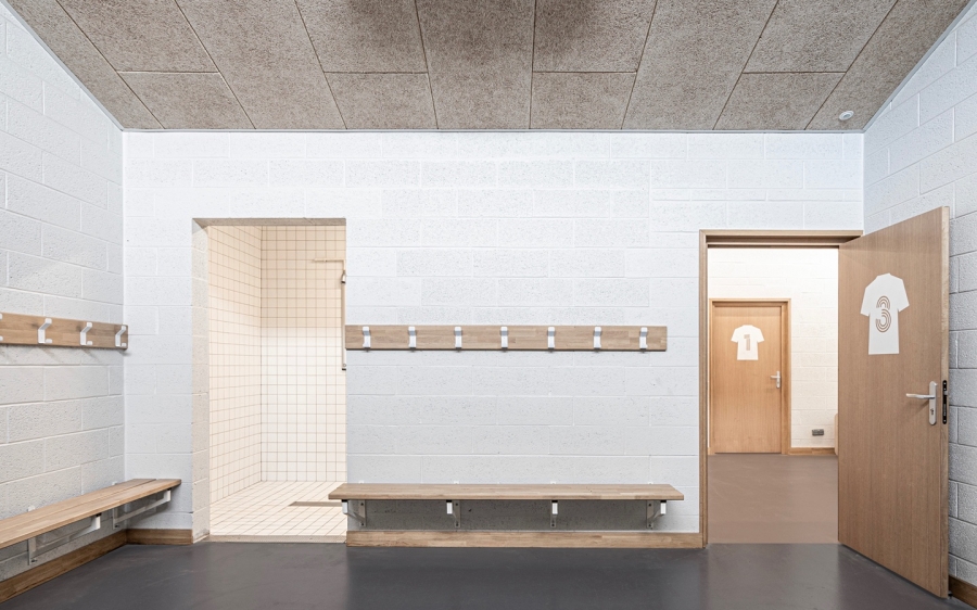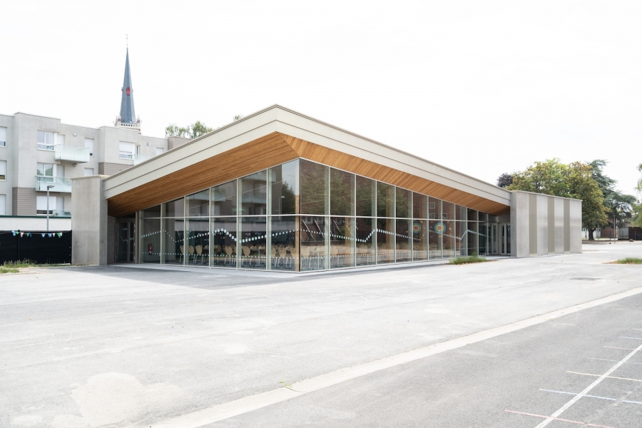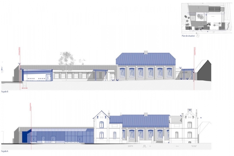 Le projet de rénovation de la salle de sports René Werquin et des vestiaires du CCA Jacques Houssin vise à améliorer les conditions d’accessibilité et de confort tout en réduisant les consommations énergétiques de ce bâtiment construit dans les années 1970. La réhabilitation thermique de la salle passe par l’installation d’une nouvelle chaudière pellets bois comme source d’énergie principale pour l’ensemble des bâtiments publics de la parcelle (salle de sport, mairie, club de foot, centre associatif et école). Profitant de l’extension accueillant la chaufferie du site, PLATO propose une nouvelle entrée "événement" visible depuis la place principale de la commune, donnant une nouvelle identité à la salle et transformant son pignon en façade principale. Parallèlement, la mise en accessibilité des vestiaires est couplée avec la requalification de l’entrée des sportifs et des espaces extérieurs y menant.