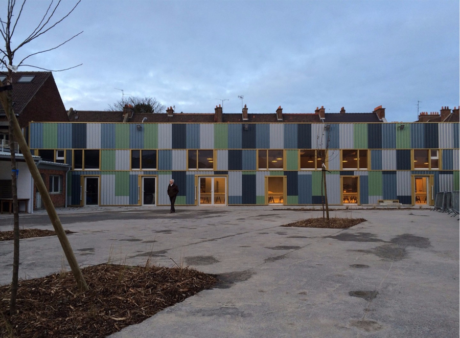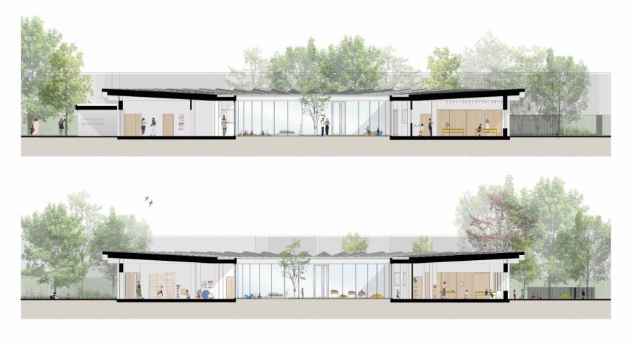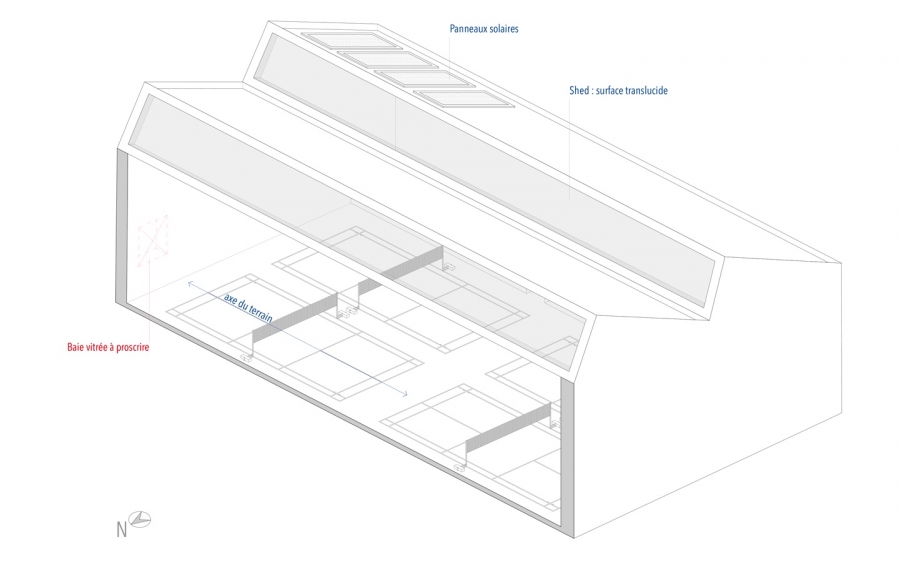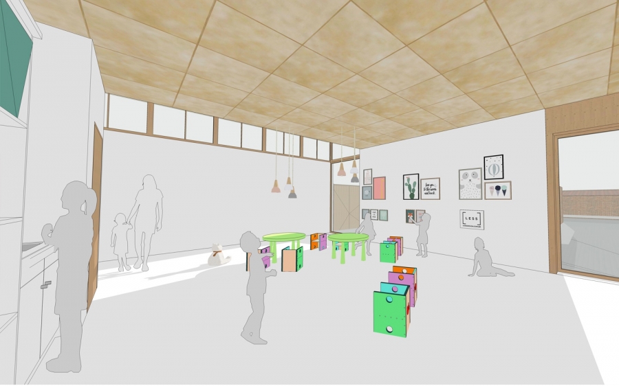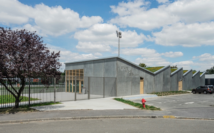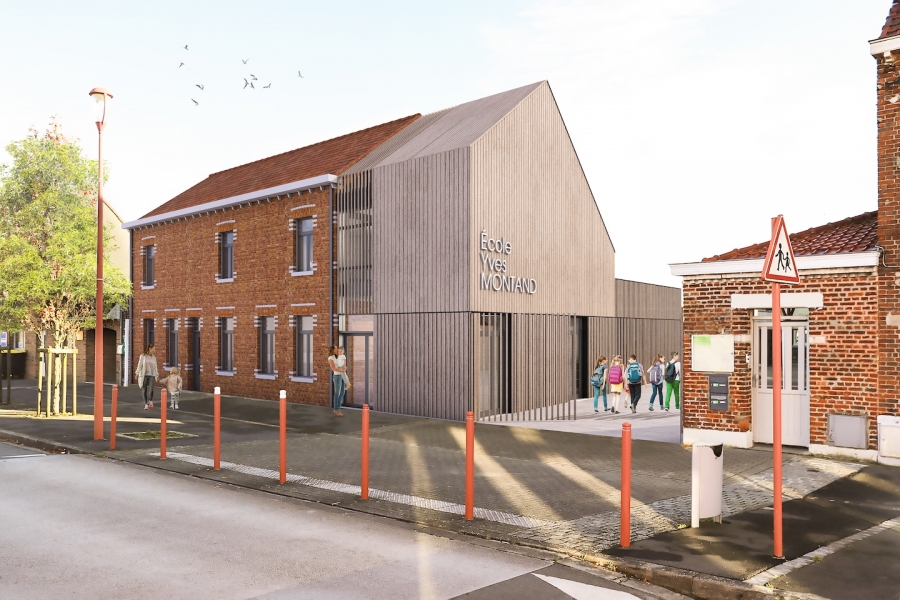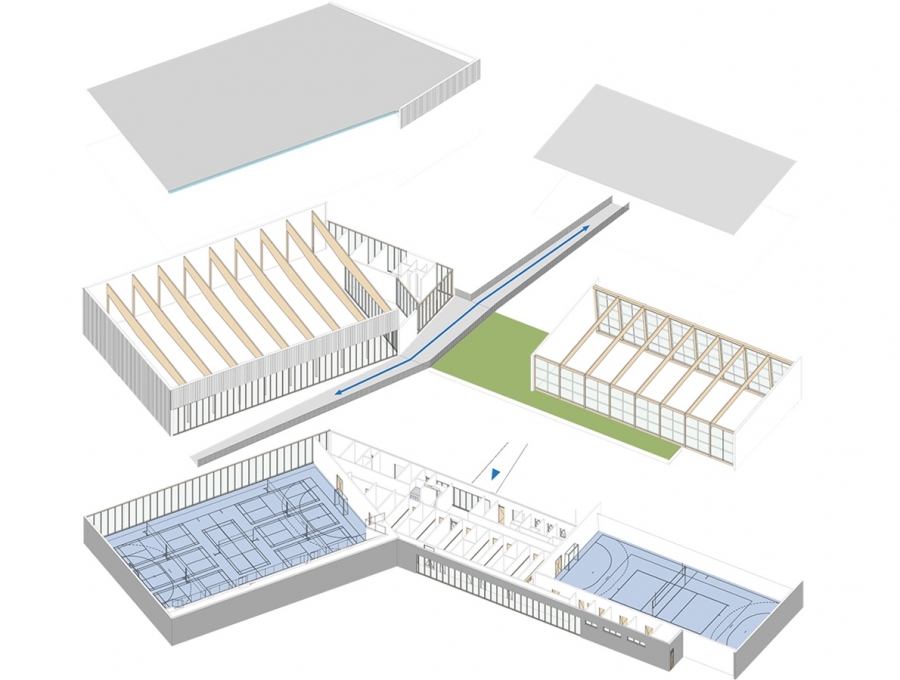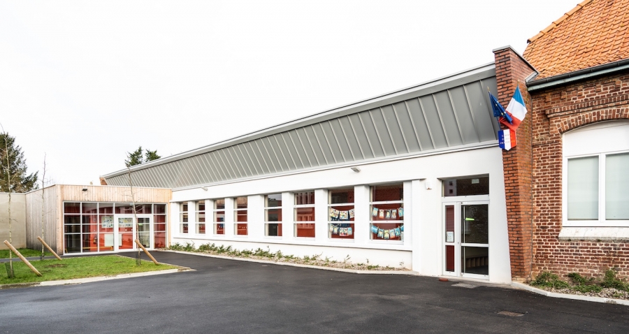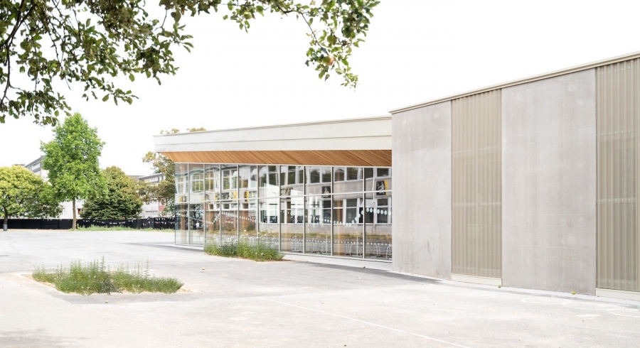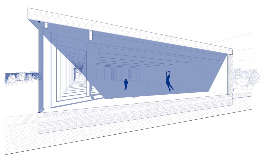 Le projet de rénovation de la salle de sports René Werquin et des vestiaires du CCA Jacques Houssin vise à améliorer les conditions d’accessibilité et de confort tout en réduisant les consommations énergétiques de ce bâtiment construit dans les années 1970. La réhabilitation thermique de la salle passe par l’installation d’une nouvelle chaudière pellets bois comme source d’énergie principale pour l’ensemble des bâtiments publics de la parcelle (salle de sport, mairie, club de foot, centre associatif et école). Profitant de l’extension accueillant la chaufferie du site, PLATO propose une nouvelle entrée "événement" visible depuis la place principale de la commune, donnant une nouvelle identité à la salle et transformant son pignon en façade principale. Parallèlement, la mise en accessibilité des vestiaires est couplée avec la requalification de l’entrée des sportifs et des espaces extérieurs y menant.