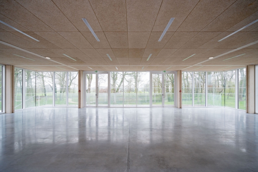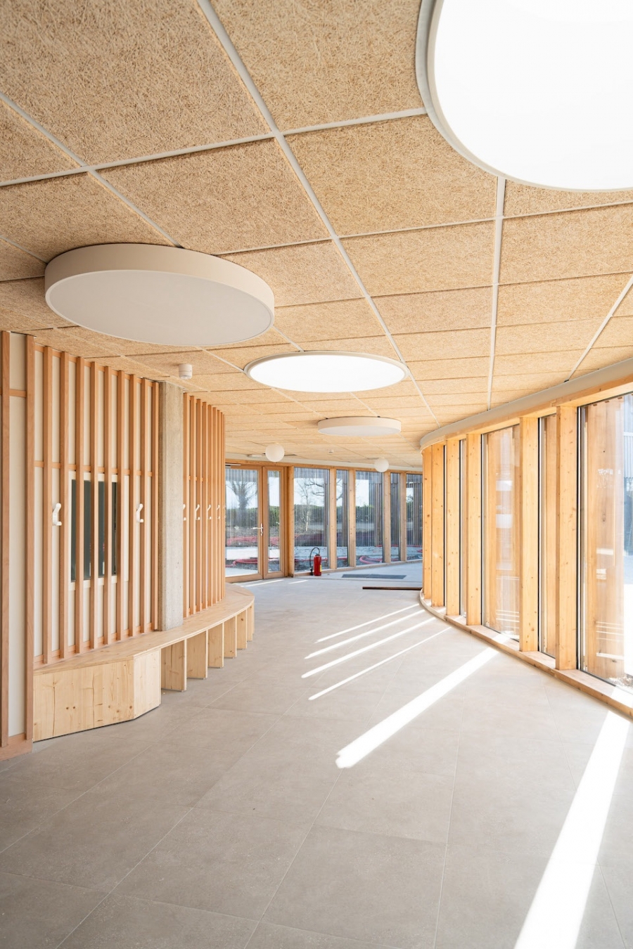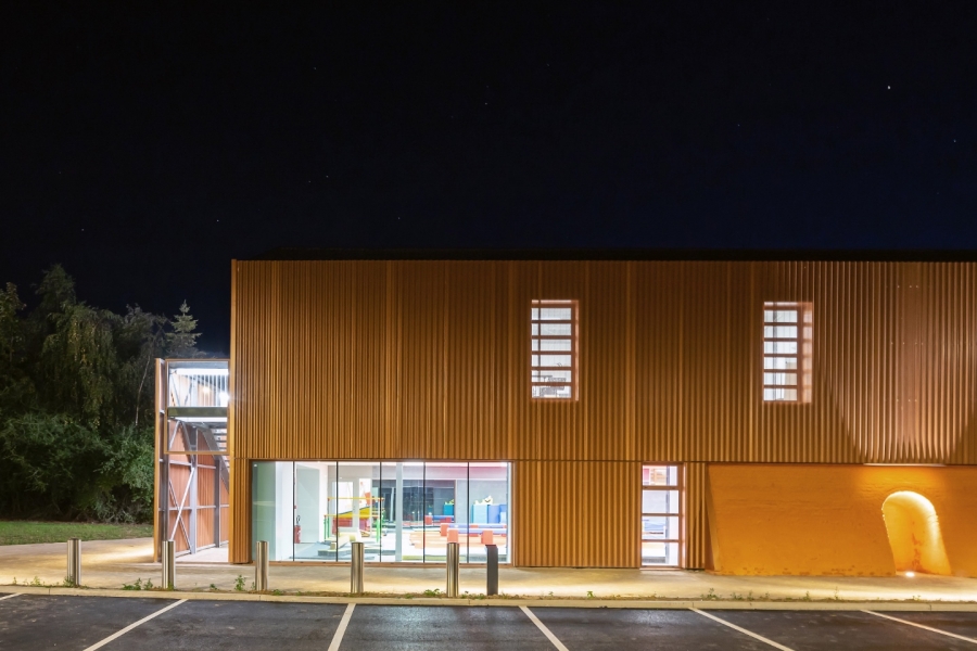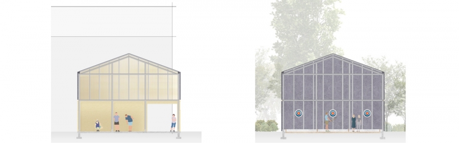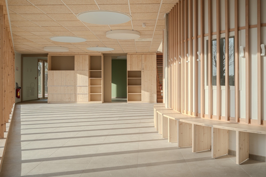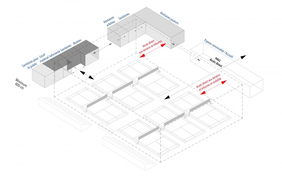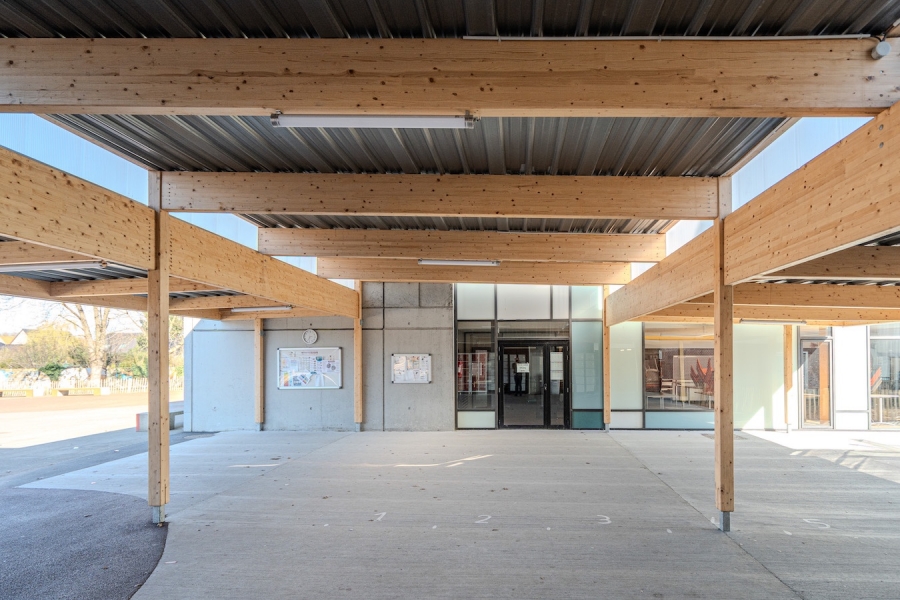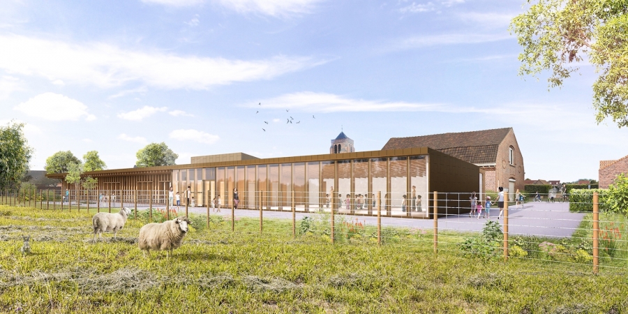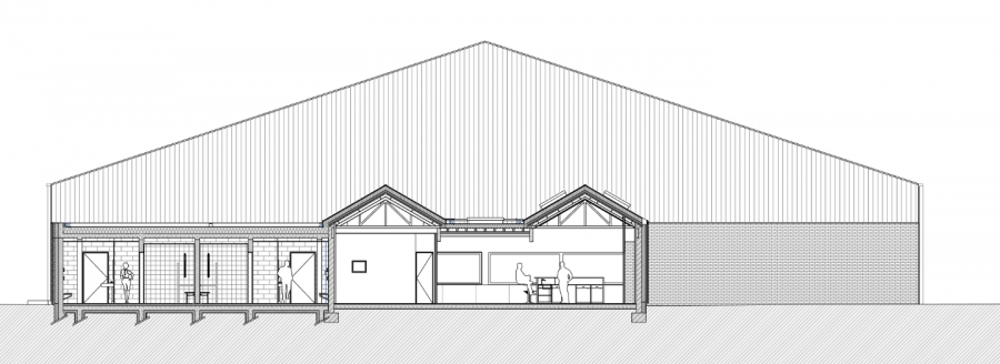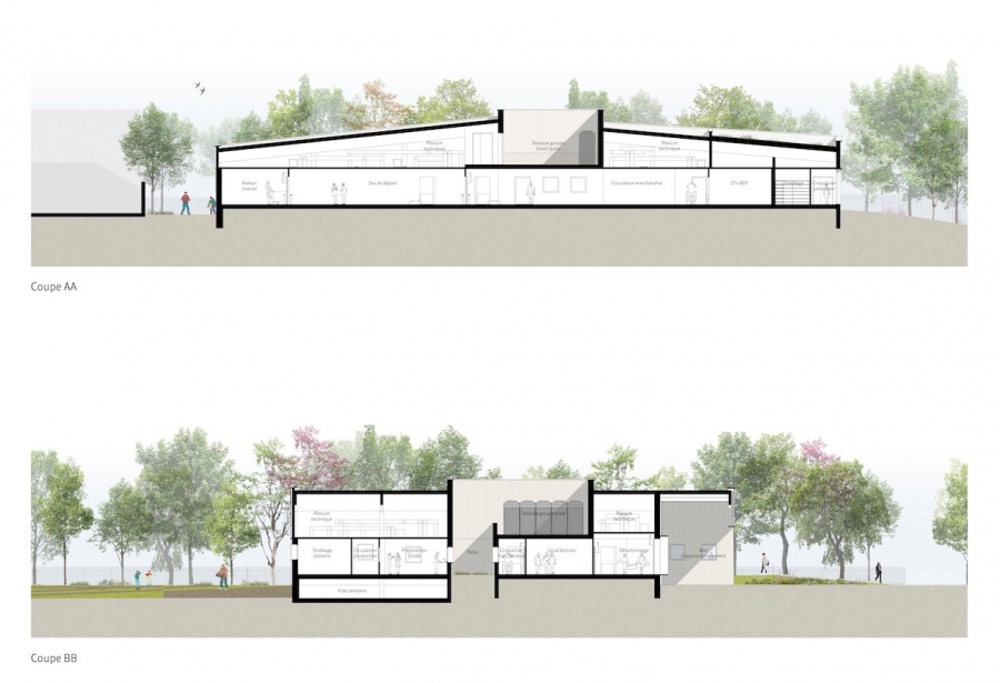 Le projet de rénovation de la salle de sports René Werquin et des vestiaires du CCA Jacques Houssin vise à améliorer les conditions d’accessibilité et de confort tout en réduisant les consommations énergétiques de ce bâtiment construit dans les années 1970. La réhabilitation thermique de la salle passe par l’installation d’une nouvelle chaudière pellets bois comme source d’énergie principale pour l’ensemble des bâtiments publics de la parcelle (salle de sport, mairie, club de foot, centre associatif et école). Profitant de l’extension accueillant la chaufferie du site, PLATO propose une nouvelle entrée "événement" visible depuis la place principale de la commune, donnant une nouvelle identité à la salle et transformant son pignon en façade principale. Parallèlement, la mise en accessibilité des vestiaires est couplée avec la requalification de l’entrée des sportifs et des espaces extérieurs y menant.
