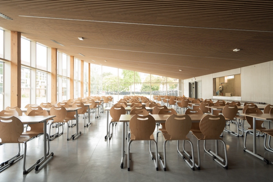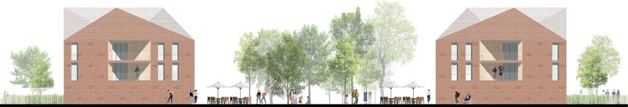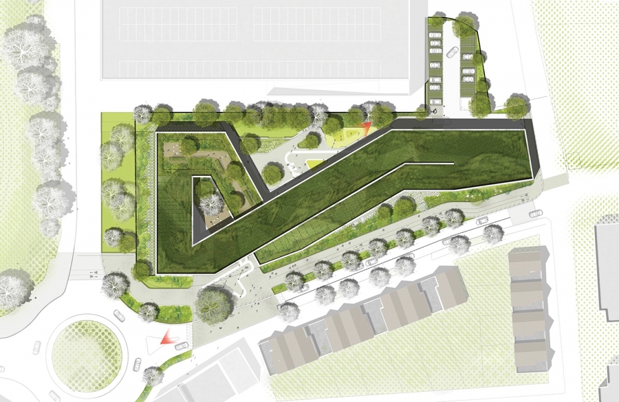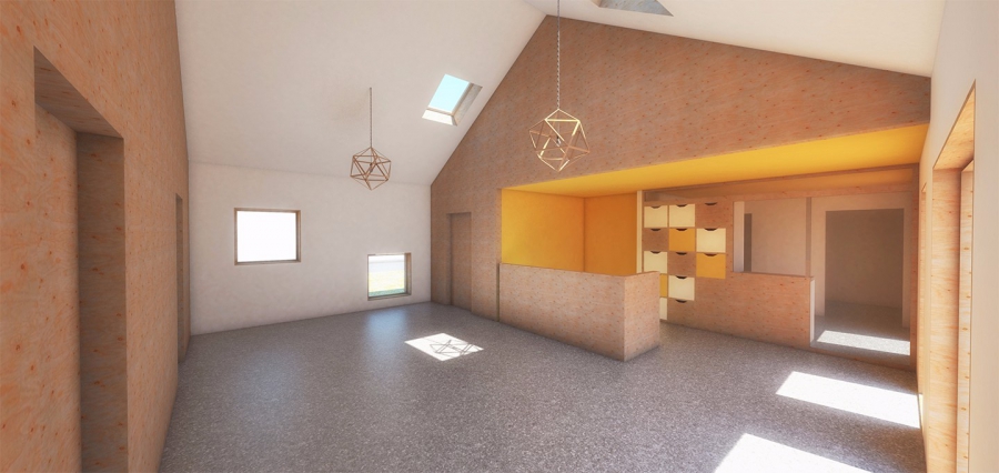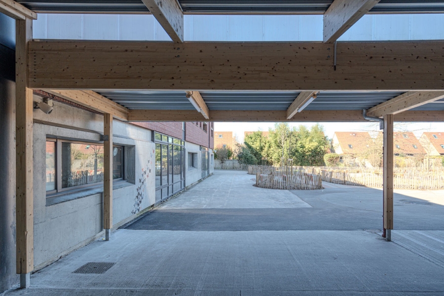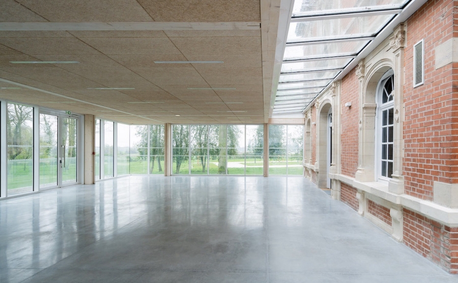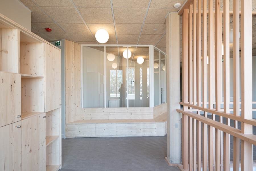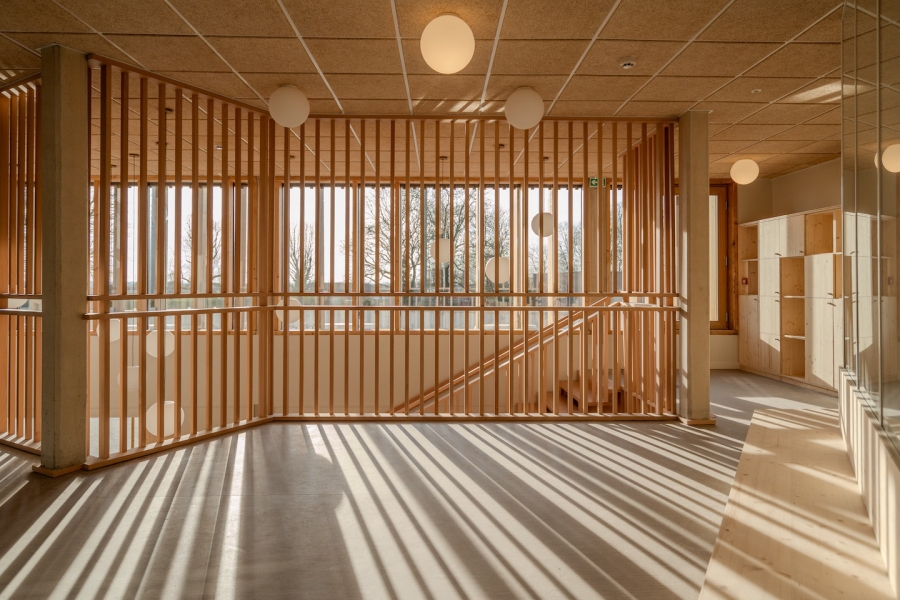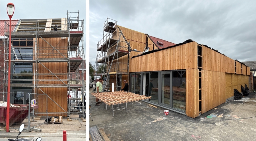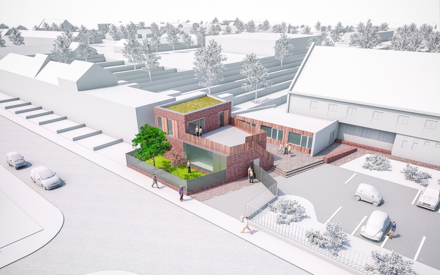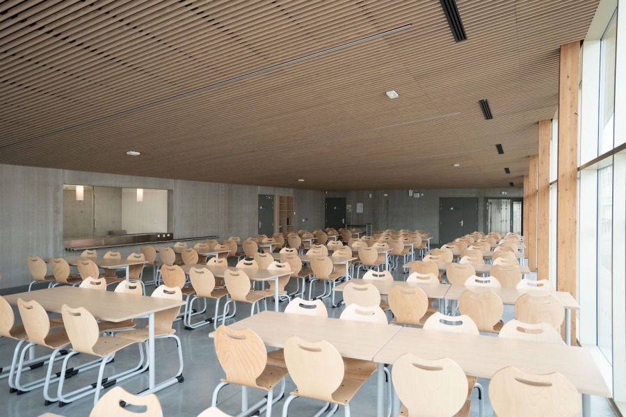 Le projet de rénovation de la salle de sports René Werquin et des vestiaires du CCA Jacques Houssin vise à améliorer les conditions d’accessibilité et de confort tout en réduisant les consommations énergétiques de ce bâtiment construit dans les années 1970. La réhabilitation thermique de la salle passe par l’installation d’une nouvelle chaudière pellets bois comme source d’énergie principale pour l’ensemble des bâtiments publics de la parcelle (salle de sport, mairie, club de foot, centre associatif et école). Profitant de l’extension accueillant la chaufferie du site, PLATO propose une nouvelle entrée "événement" visible depuis la place principale de la commune, donnant une nouvelle identité à la salle et transformant son pignon en façade principale. Parallèlement, la mise en accessibilité des vestiaires est couplée avec la requalification de l’entrée des sportifs et des espaces extérieurs y menant.