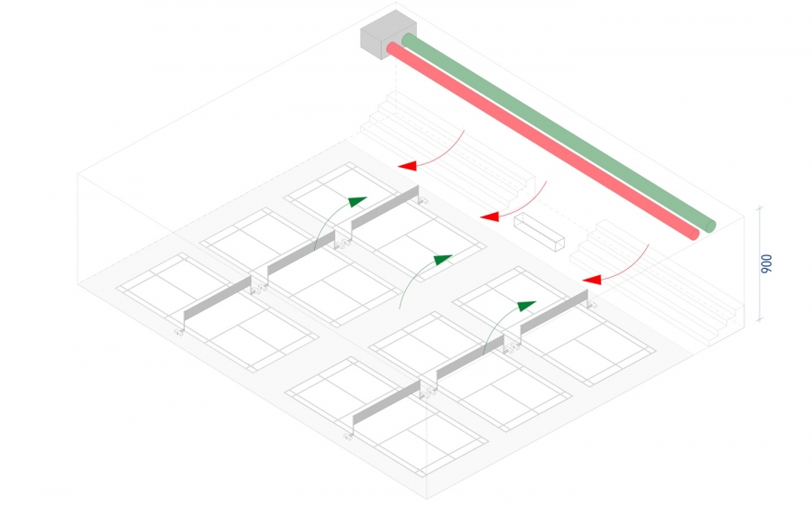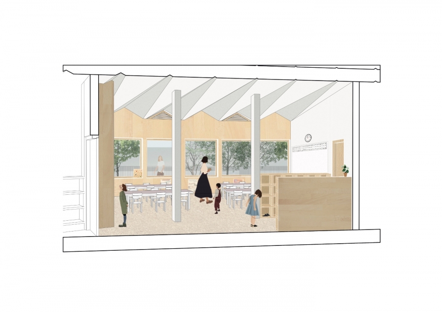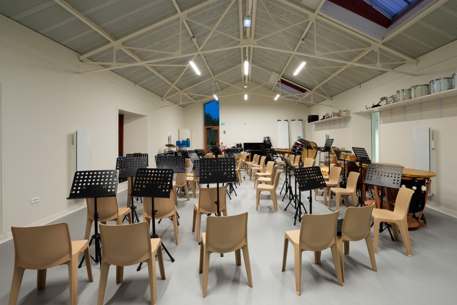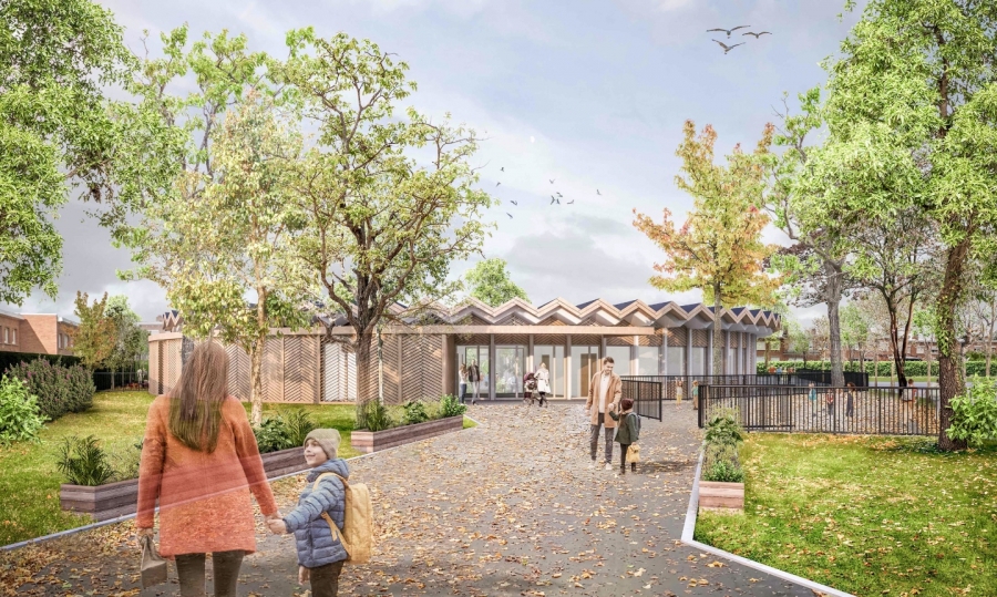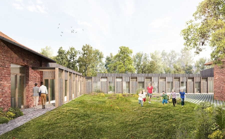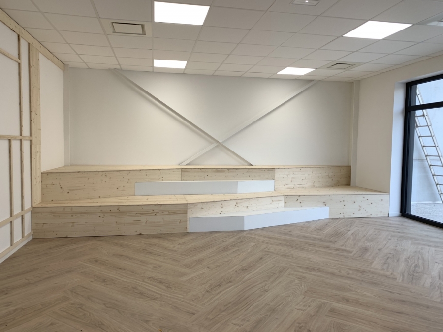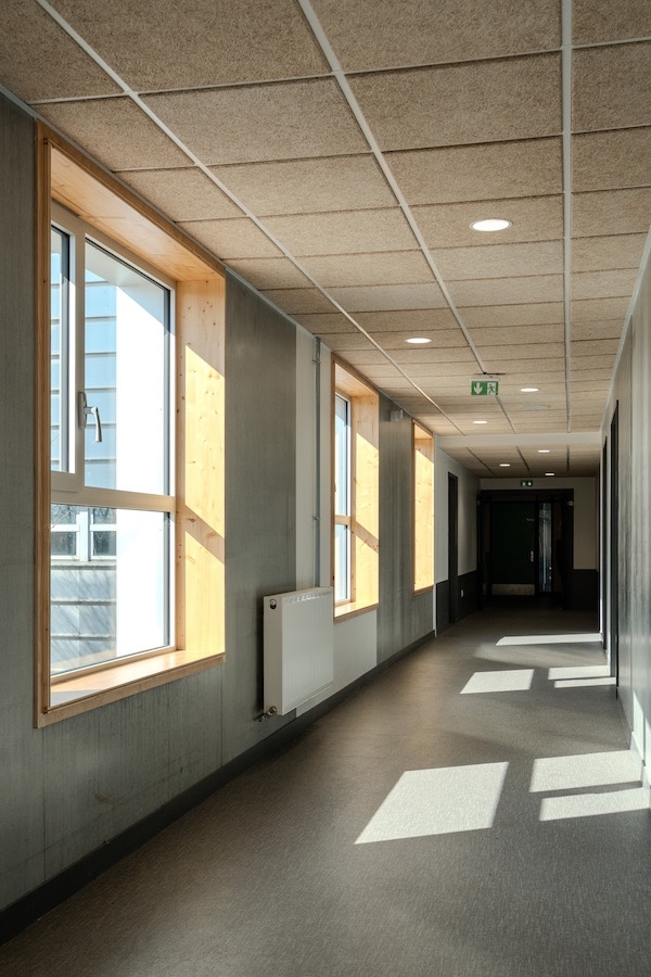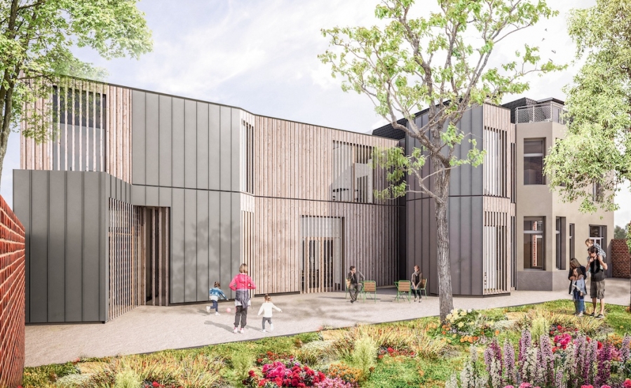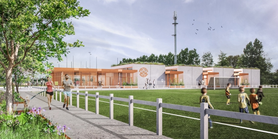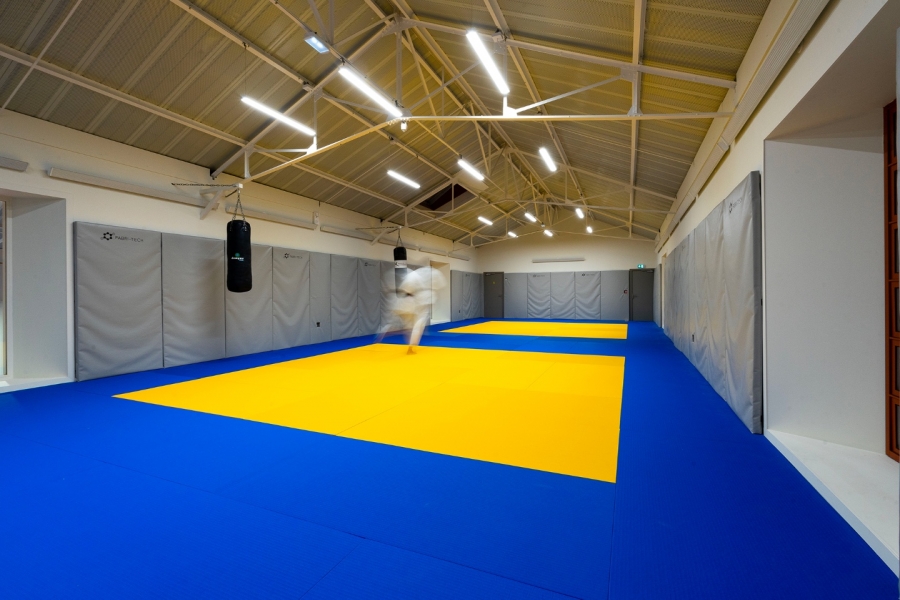 Le projet de rénovation de la salle de sports René Werquin et des vestiaires du CCA Jacques Houssin vise à améliorer les conditions d’accessibilité et de confort tout en réduisant les consommations énergétiques de ce bâtiment construit dans les années 1970. La réhabilitation thermique de la salle passe par l’installation d’une nouvelle chaudière pellets bois comme source d’énergie principale pour l’ensemble des bâtiments publics de la parcelle (salle de sport, mairie, club de foot, centre associatif et école). Profitant de l’extension accueillant la chaufferie du site, PLATO propose une nouvelle entrée "événement" visible depuis la place principale de la commune, donnant une nouvelle identité à la salle et transformant son pignon en façade principale. Parallèlement, la mise en accessibilité des vestiaires est couplée avec la requalification de l’entrée des sportifs et des espaces extérieurs y menant.