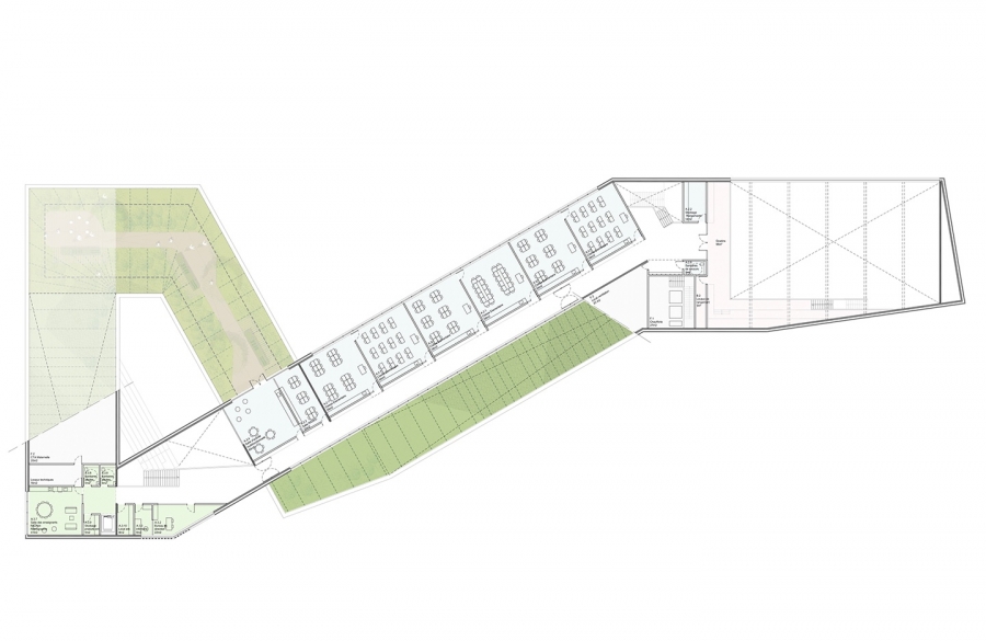 Pour répondre à l’objectif de la maîtrise d’ouvrage de disposer d’un outil amélioré, les énergies renouvelables sont intégrées au projet. Des panneaux photovoltaïques seront installés en toiture, permettant d’orienter le bâtiment vers la baisse de ses consommations énergétiques.
