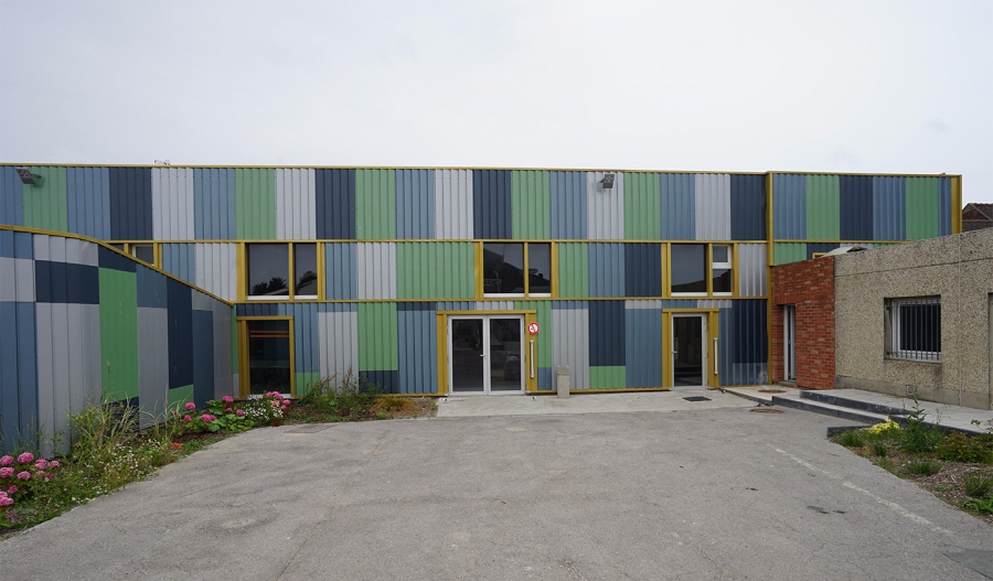 Le projet de rénovation de la salle de sports René Werquin et des vestiaires du CCA Jacques Houssin vise à améliorer les conditions d’accessibilité et de confort tout en réduisant les consommations énergétiques de ce bâtiment construit dans les années 1970. La réhabilitation thermique de la salle passe par l’installation d’une nouvelle chaudière pellets bois comme source d’énergie principale pour l’ensemble des bâtiments publics de la parcelle (salle de sport, mairie, club de foot, centre associatif et école). Profitant de l’extension accueillant la chaufferie du site, PLATO propose une nouvelle entrée "événement" visible depuis la place principale de la commune, donnant une nouvelle identité à la salle et transformant son pignon en façade principale. Parallèlement, la mise en accessibilité des vestiaires est couplée avec la requalification de l’entrée des sportifs et des espaces extérieurs y menant.